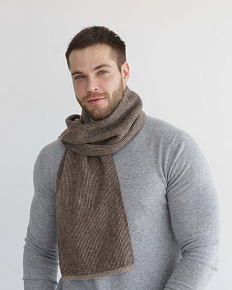 Приобрели шарф для мужчины, чтобы носить его с курткой без воротника. Шарф теплый плотно связан, мягкий, коричневый цвет и серые полоски. |