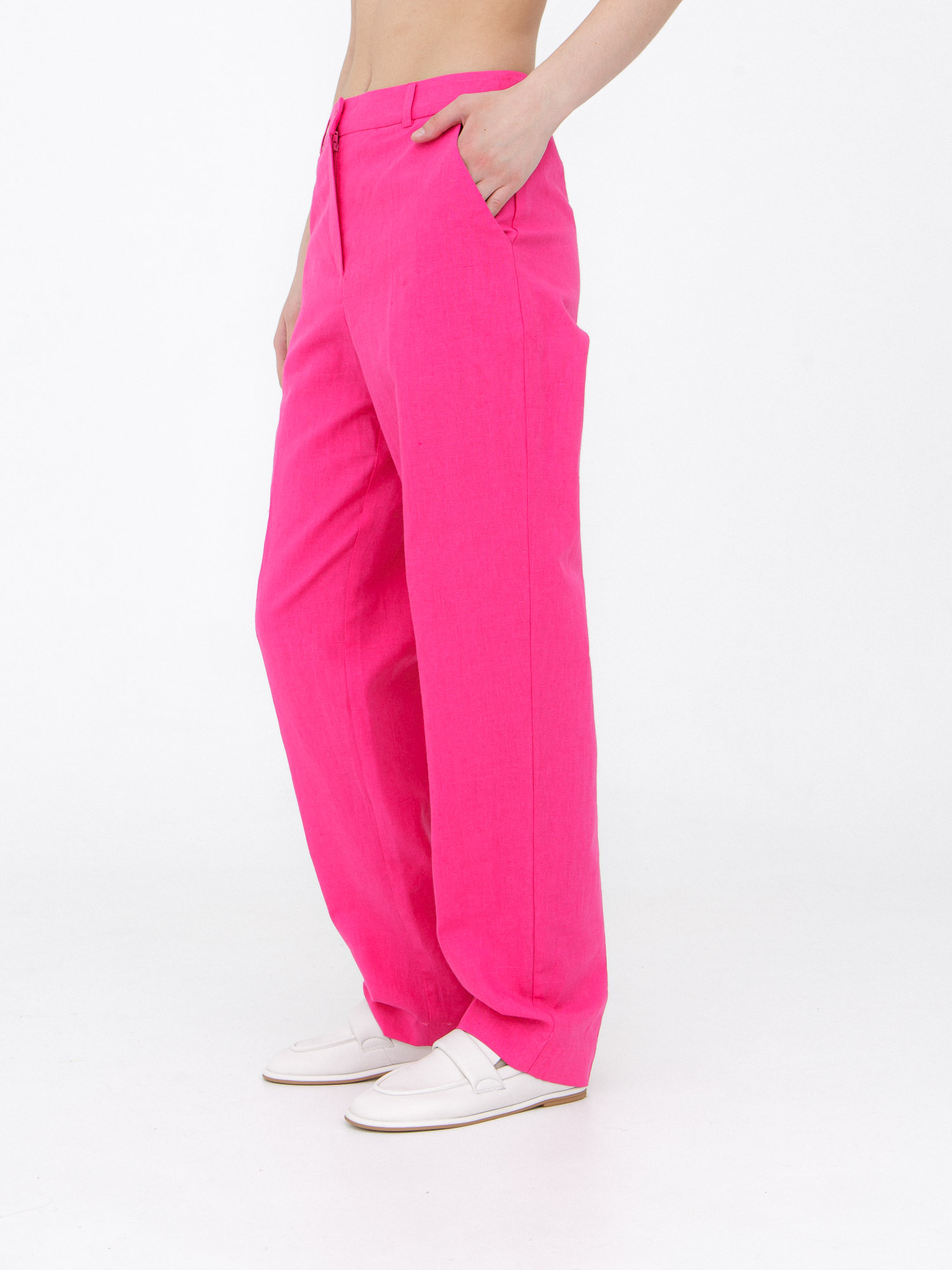 Брюки из льна и хлопка КЛ-7809-ИЛ23 фуксия