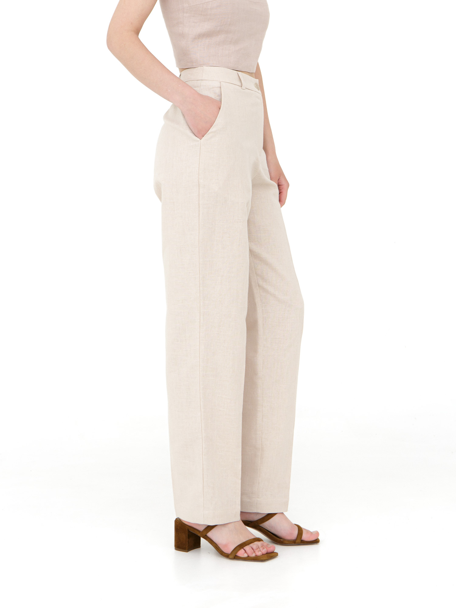 Брюки из льна и хлопка КЛ-7809-ИЛ23 бежевый