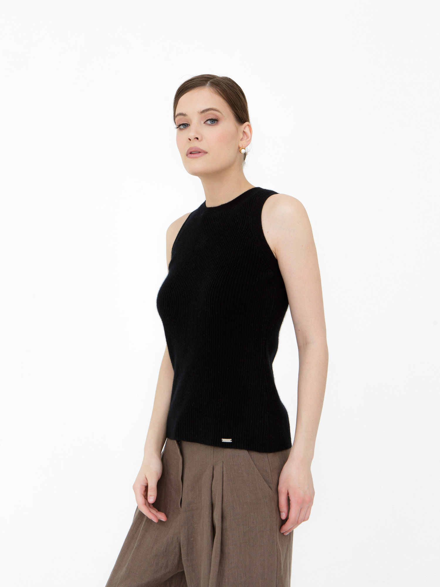 Кашемировый джемпер без рукавов — элегантная и лаконичная модель, которая легко вписывается в современный базовый гардероб. Минималистичный силуэт и мягкая текстура создают утончённый образ, подходящий как для повседневных, так и для более собранных городских образов. Лёгкий и приятный к телу трикотаж обеспечивает комфорт в течение всего дня.