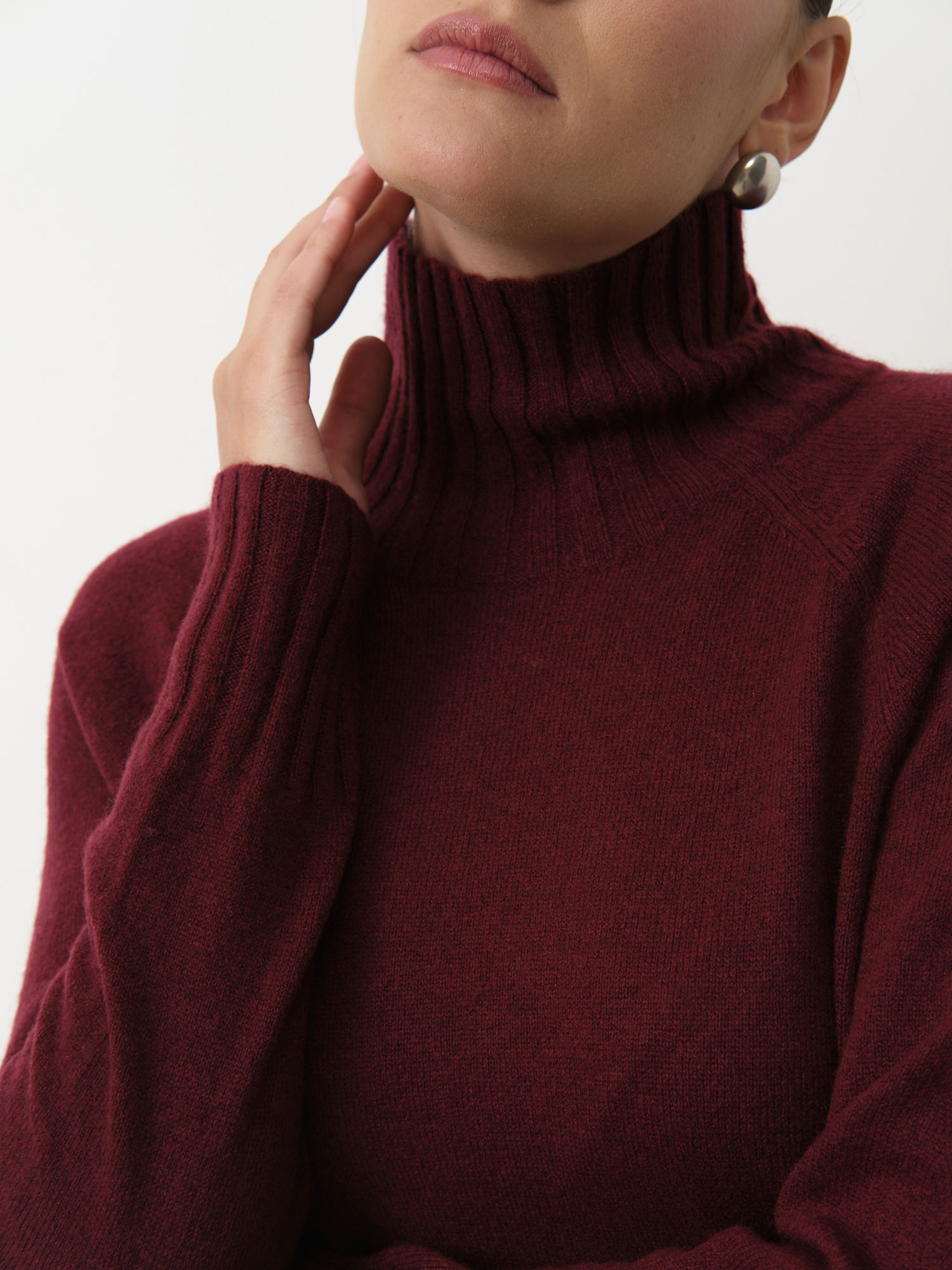 высокий ворот, манжеты на рукаве и подол выполнены "резинкой"