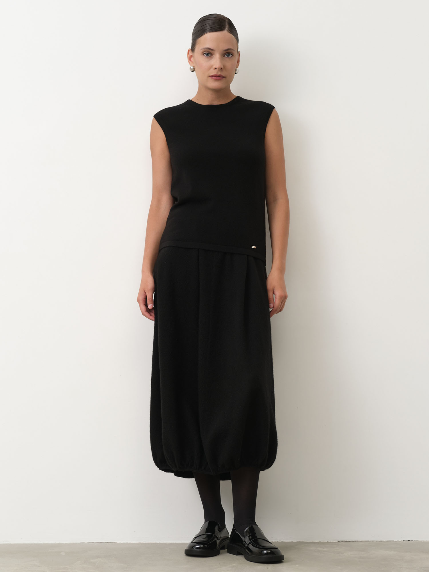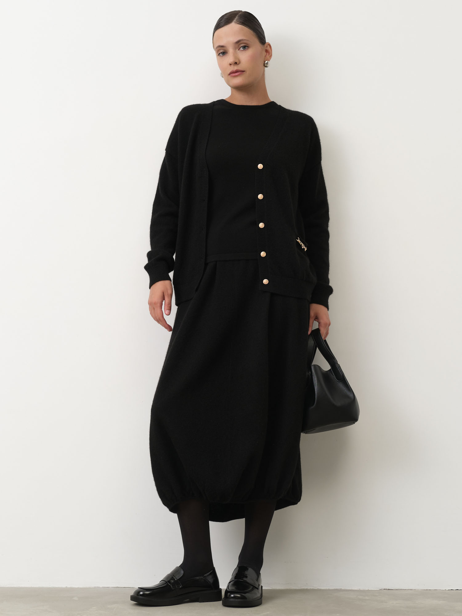Эластичный пояс для комфортной посадки, мягкая трикотажная вязка и объёмный силуэт, обеспечивающий свободу движений. Качественная обработка краёв подчёркивает премиальность изделия.