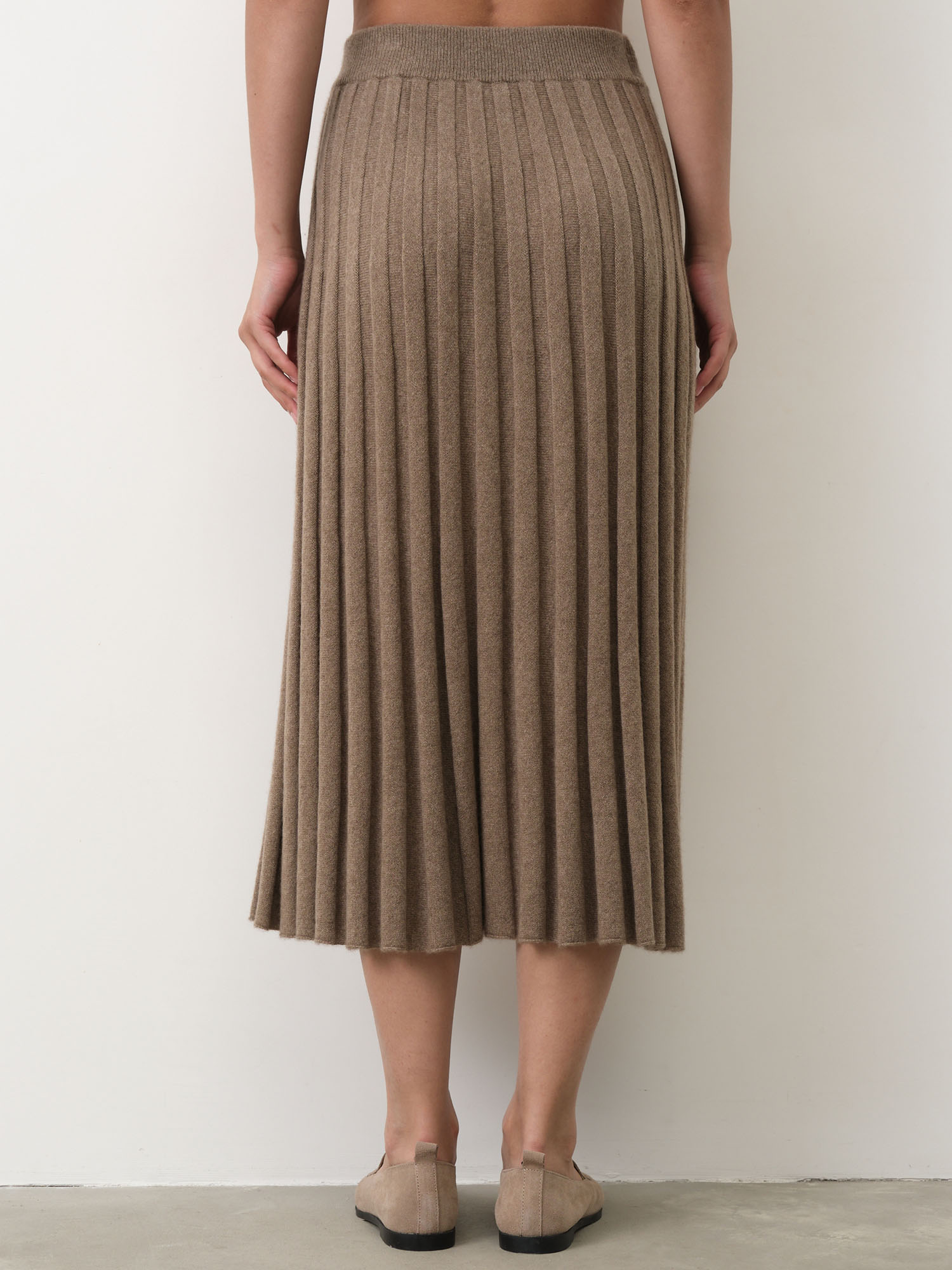 Юбка из кашемира — элегантная и женственная модель с плиссированной фактурой, которая красиво движется при ходьбе и придаёт образу лёгкость. Подходит для повседневных и более утончённых образов, легко сочетается с джемперами, водолазками и блузами.